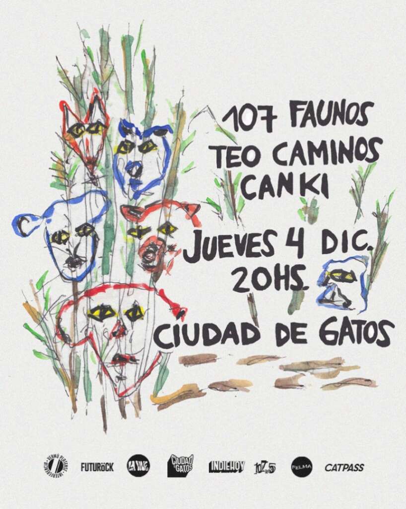 La noche del jueves 4 de diciembre de 2025 reúne en el escenario de Ciudad de Gatos a tres propuestas musicales que confluyen en La Plata para una experiencia compartida: la banda local 107 Faunos, el cantautor y músico Teo Caminos y el proyecto independiente Canki. 107 Faunos invitan a una velada que se anticipa como ecléctica y enérgica, mientras Teo Caminos llega con…