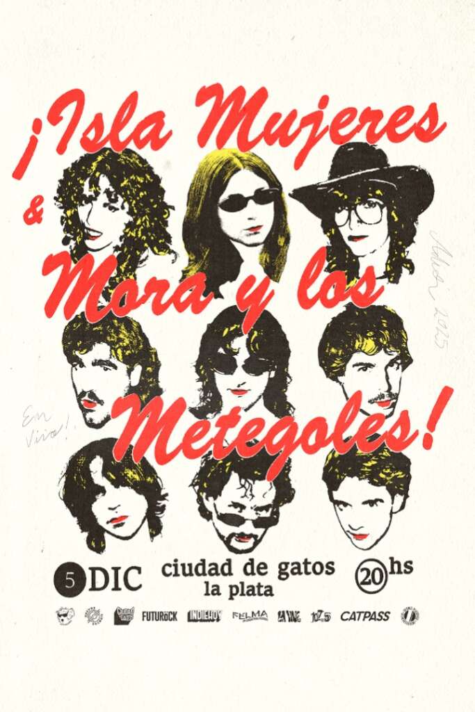 El viernes 5 de diciembre de 2025 a las 20:00 en Ciudad de Gatos convergen dos bandas de la escena platense para una noche especial: por un lado Isla Mujeres, trío de pop‑rock formado en La Plata a mediados de la década de 2010. Por el otro, Mora y los Metegoles, banda local que desde 2017 trabaja un sonido… - 107 Faunos – Teo Caminos – Canki